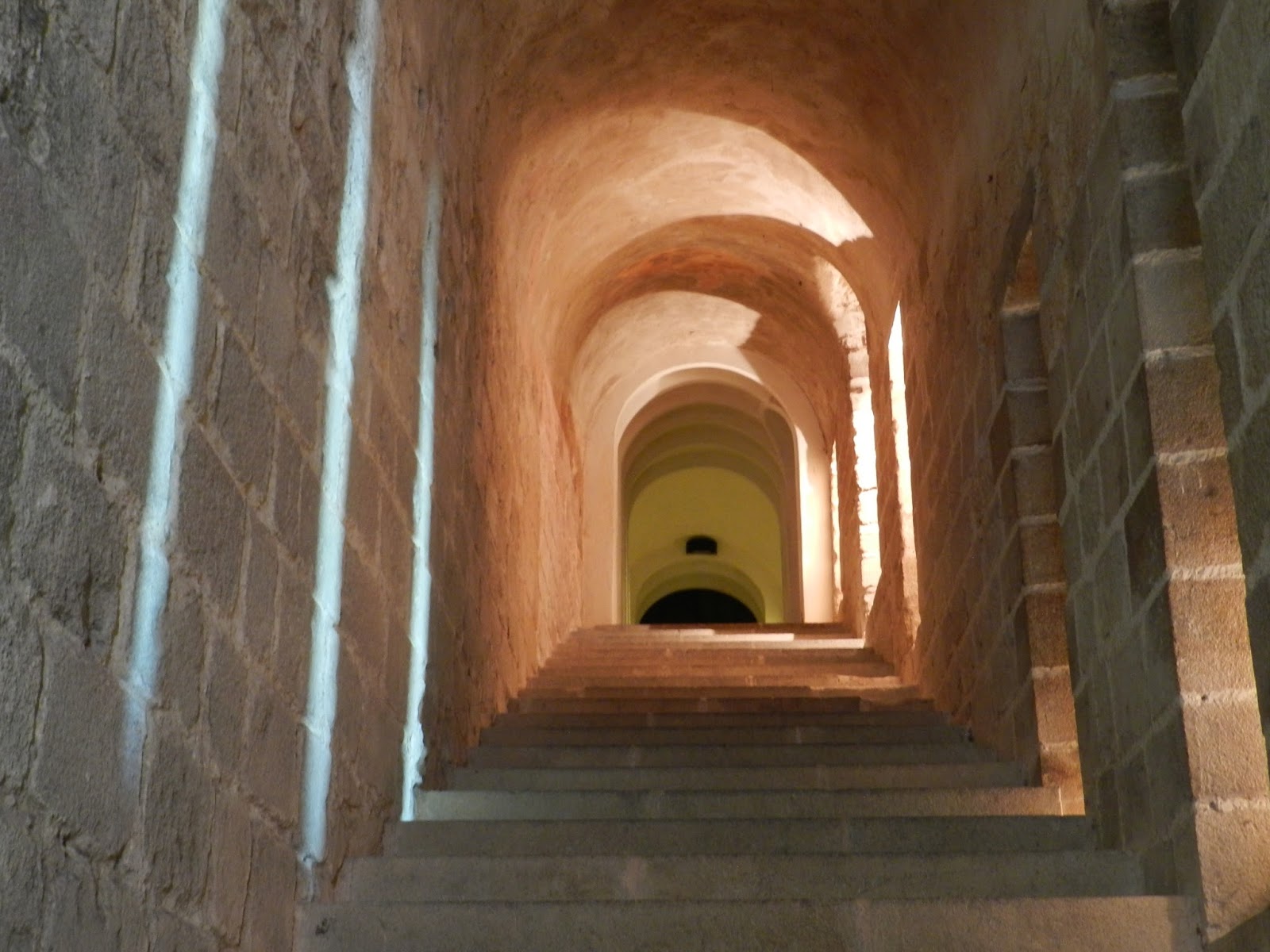 The walk in the abbey is a one-way route through fine — but barren — Gothic rooms. A rented audioguide explains where you are as you explore the impressive church, delicate cloisters, and refectory (where the monks ate in austere silence). A highlight is the giant tread-wheel, which six workers once powered hamster-style to haul two-ton loads of stones and supplies from the landing below. This was used until the 19th century.